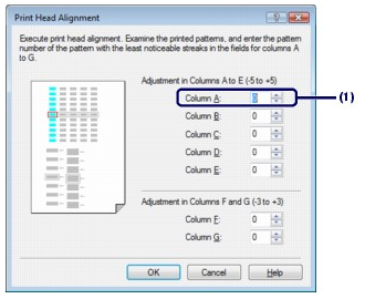 To check the current settings before aligning the Print Head, confirm that one or more sheets of A4 or Letter-sized plain paper are loaded in the Cassette, then click Print Alignment Value.