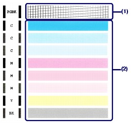 If there are missing lines in (1) and also white streaks in (2), clean all the ink tanks.