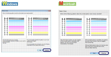 Click Exit (Windows) or Quit (Macintosh) on the Pattern Check dialog box to exit nozzle check pattern examination.