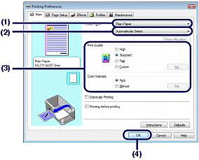 (3) Specify the print quality, etc. in Print Quality and Color/Intensity as required.