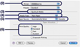 (1) Select the media type of the paper to print in Media Type.