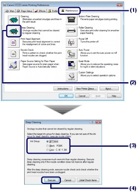 Do not perform any other operations until the printer completes the deep cleaning of the Print Head. This takes about 2 minutes.