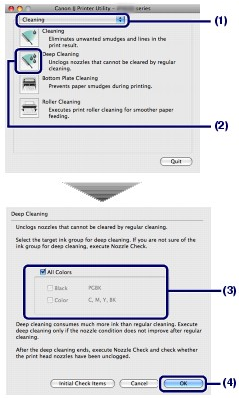 (1) Make sure that Cleaning is selected in the pop-up menu.
