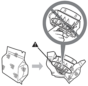 There may be some transparent or light blue ink on the inside of the bag the Print Head comes in, or the inside of the protective cap - this has no effect on print quality. Be careful not to get ink on yourself when handling these items. Be careful not to stain your hands.