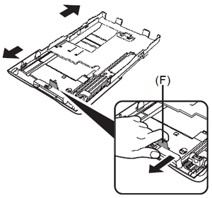 2.Pull the Tab (F) in the direction of the arrow and extend the Cassette.