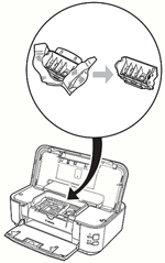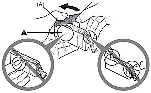 2.While pressing down with your left thumb, twist off the orange protective cap (A) located on the bottom of the ink tank .