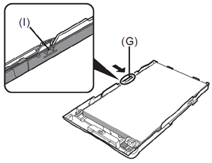 The Paper Guide (H) will stop when it aligns with the corresponding mark of paper size.