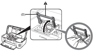 5. Tilt the Print Head and set it in place. Lower the Print Head Lock Lever (D) completely.