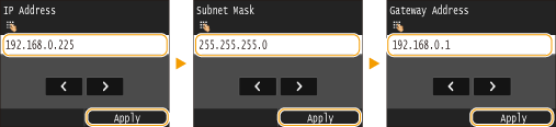4-B-3. Specify the IP address, subnet mask, and gateway address (or default gateway).