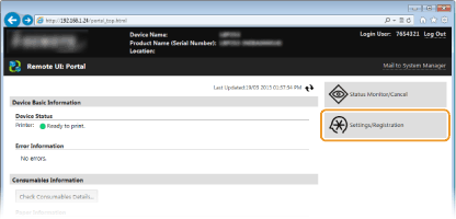 2. Click [Settings/Registration].