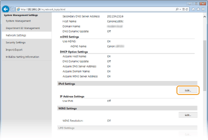 4. Click [Edit] in [IPv6 Settings].