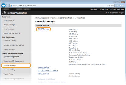 3. Click [Network Settings] [TCP/IP Settings].