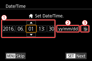 If the [Date/time] settings screen is not displayed, please refer to Changing the Date and Time.