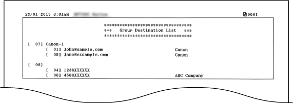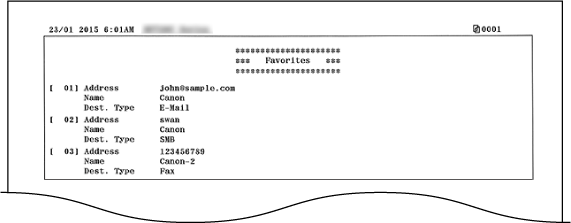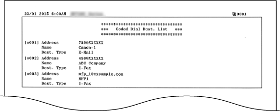 You can check the list of destinations registered in the Address Book as ⋖Coded Dial⋗, ⋖Favorites⋗, and ⋖Group Dial⋗ by printing an Address Book List.