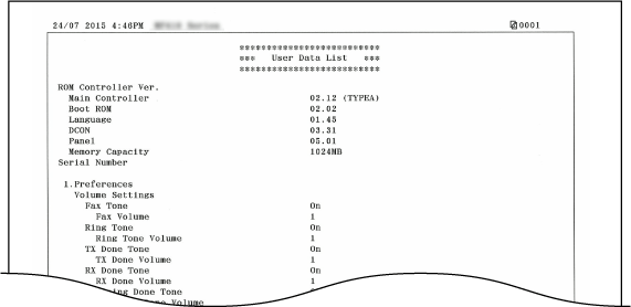 You can check the list of the settings (see the "e-Manual" (HTML manual) in the DVD-ROM supplied with the machine.) as well as the content that has been registered in the machine by printing a User Data List or a System Manager Data List. Both lists include the paper size and type registered in the machine, the print settings of ⋖TX Result Report⋗, ⋖Communication Management Report⋗, and ⋖RX Result Report⋗.