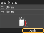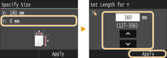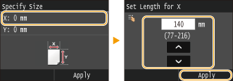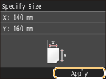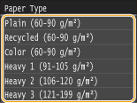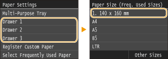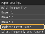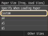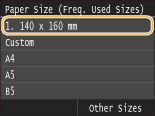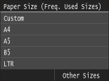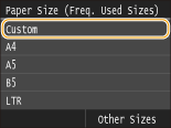 The paper sizes that are registered in the procedure above are displayed on the screen for selecting the paper size.