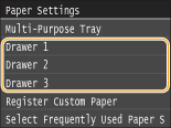 3. Tap ⋖Multi-Purpose Tray⋗, ⋖Drawer 1⋗, ⋖Drawer 2⋗, or ⋖Drawer 3⋗.