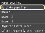 You can register default paper settings for the multi-purpose tray. Registering default settings can save yourself the effort of having to specify the settings each time you load the same paper into the multi-purpose tray.