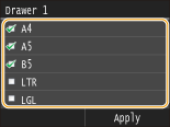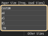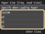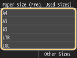 You can ensure that only frequently used paper sizes are shown in the screen for selecting the paper size setting.