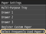 2. Tap ⋖Select Frequently Used Paper Sizes⋗.