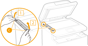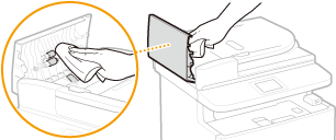 Regularly wipe off the dust from the platen glass and the underside of the feeder to prevent smudges to be printed on documents or printouts.
