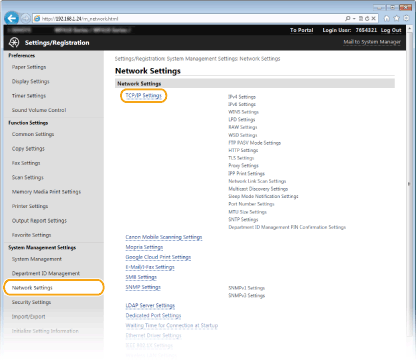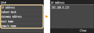 Connecting the machine to a network requires a unique network IP address. Two versions of IP addresses are available: IPv4 and IPv6. Configure these settings depending on the network environment. To use IPv6 addresses, you need to properly configure the IPv4 address settings.