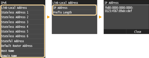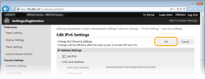 | Link-local address | 1 | An address that is only valid within a subnet or link and cannot be used to communicate with devices beyond a router. A link-local address is automatically set when the IPv6 function of the machine is enabled. |