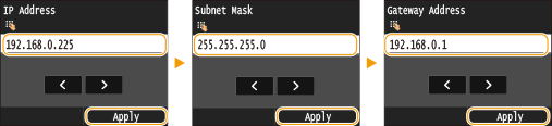 4-B-3. Specify the IP address, subnet mask, and gateway address (or default gateway).