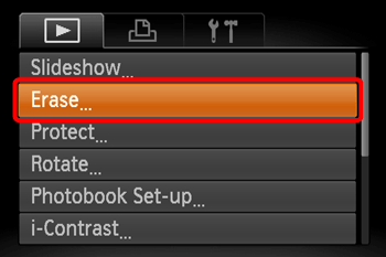 2. Press the [ ] button and choose [Erase] on the [Playback] (