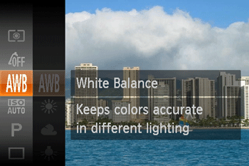 | Automatically sets the optimal white balance for the shooting conditions. | |