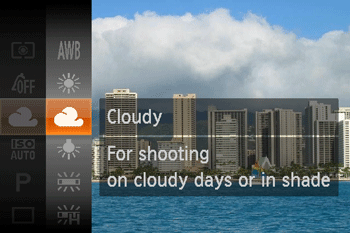For a list of shooting modes in which the white balance setting can be changed, please refer to the table at the bottom of the page.