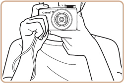 Keep your arms tight against your body while holding the camera firmly by the sides. Be sure that your fingers do not block the [flash].