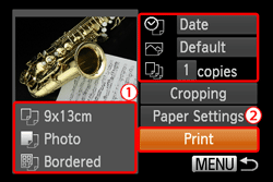 12. The camera returns to the print setting screen.