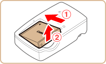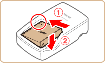 1. After aligning the marks on the battery and charger, insert the battery by pushing it in