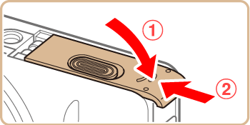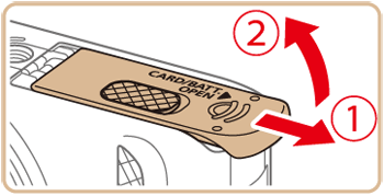 Insert the included battery pack and a memory card (sold separately). Note that before using a new memory card (or a memory card formatted in another device), you should format the memory card with this camera.