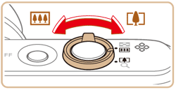 To zoom in and enlarge the subject, move the zoom lever toward [ ] (telephoto), and to zoom away from the subject, move it toward [