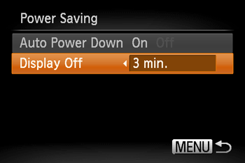 The [Display Off] setting is applied even if you set [Auto Power Down] to [Off].