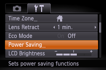 To conserve battery power, you should normally choose [On] for [Auto Power Down] and [1 min.] or less for [Display Off].