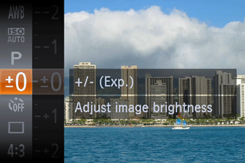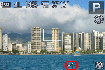 5. Press the [ ] button to display the set exposure compensation amount, and then shoot.