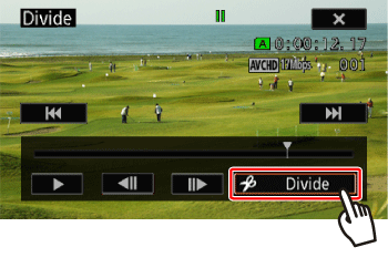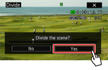 4. Touch [ ] to pause the playback at the point where you want to divide the scene.
