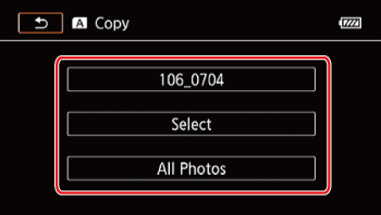 | [folder name] | Copy all the photos taken on a particular date. The folder name will appear in the control button, with the last four digits indicating the month and day. |
