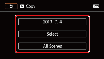 | date | Copy all the scenes recorded on the date shown in the control button. |