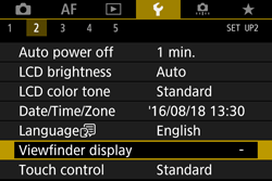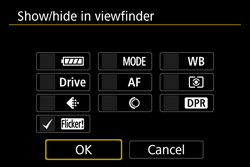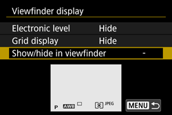 ⋗ is not displayed in the viewfinder, change the [Show/hide in viewfinder] setting.