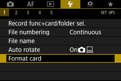If you format a CF card exceeding 128 GB or SDXC card with this camera and then insert it into another camera, an error may be displayed and the card may become unusable. Certain computer operating systems or card readers may not recognize a card formatted in exFAT.