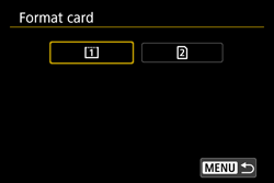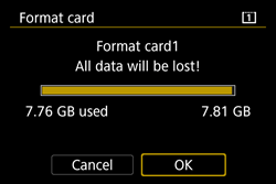 When the card is formatted, all images and data on the card will be erased. Even protected images will be erased, so make sure there is nothing you need to keep. If necessary, transfer the images and data to a computer, etc., before formatting the card.