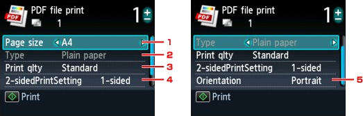 You can print up to 250 pages at a time. If you try to print more than 250 pages of a PDF file, The specified PDF file contains too many pages. The pages exceeding the number of printable pages will not be printed. Continue? is displayed on the LCD. To start printing, select Yes and press the OK button. If you need to print more than 250 pages of a PDF file, print them from a computer.