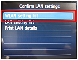 When "WLAN setting list" is displayed, confirm the MAC address using the or