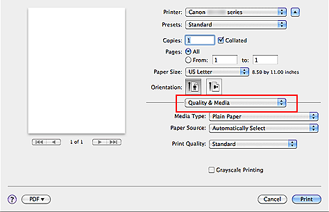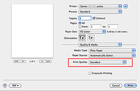 For Print Quality, select High, Standard, or Fast, according to your purpose.
