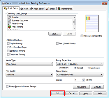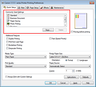 In Commonly Used Settings on the Quick Setup tab, select a printing profile suited for the purpose.