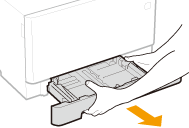 Make sure to hold the paper drawer with both hands, and pull it out gently. Otherwise, you may damage the paper drawer by dropping it, if it slides out too easily.